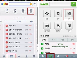 QR 코드 읽기 : 네이버 앱이나 다음 앱으로 아이폰,갤럭시S 등 스마트기기에 설치하면 QR 코드를 읽을 수 있습니다. 아래 그림이 왼쪽은 다음 앱과 오른쪽은 네이버 앱으로 저의 기기(갤럭시플레이어50)에 설치한 것입니다. 빨간색 사각형의 아이콘을 터치하면 QR 코드를 읽을 수 있습니다.
