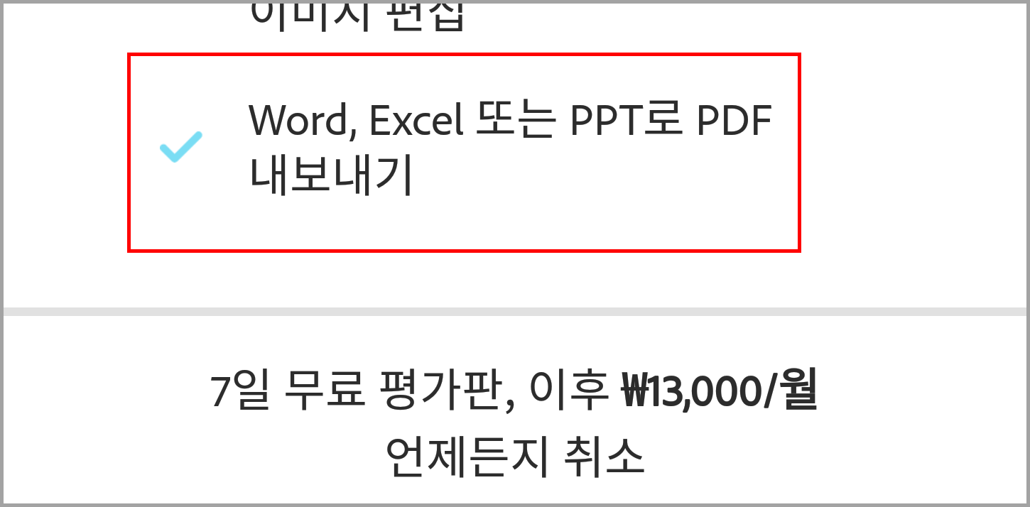 PDF와 관련있는 Adobe Acorobat 앱을 사용하면 문서 파일을 열지 않고 바로 PDF로 변환이 가능하다. 하지만 이것은 HWP 파일을 PDF로 변한하는 것을 지원하지 않는다. Adobe Acrobat 앱은 워드(Word),엑셀(Excel), 파워포인트(PPT)와 관련이 있었다. 나는 Adobe Acorobat을 사용하면 모든 문서를 PDF로 변환이 가능한 것으로 알았다.