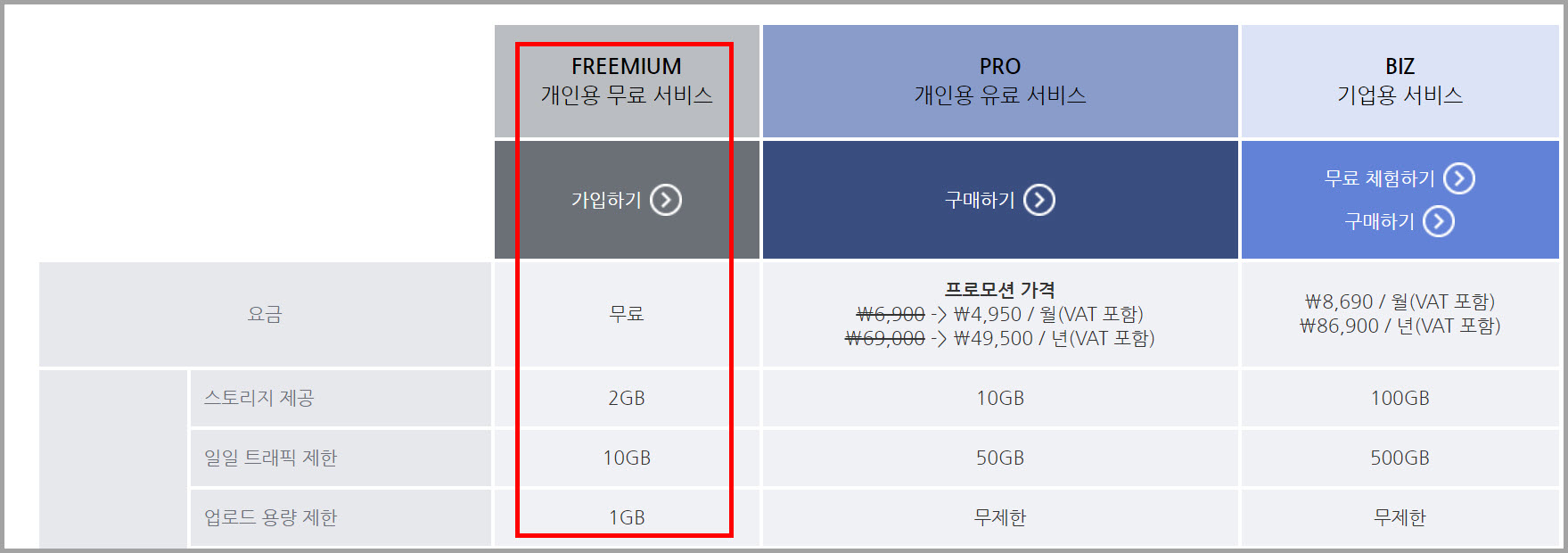 아래 더보기 안 그림을 보면 알겠지만 제한은 있지만 개인은 2GB까지 무료다. 더 많은 용량, 기업이 사용하기를 원한다면 유료 서비스를 이용해야 한다. 참고로 더보기 안 그림은 한컴오피스 웹을 설명하는 모든 것이 아니다.