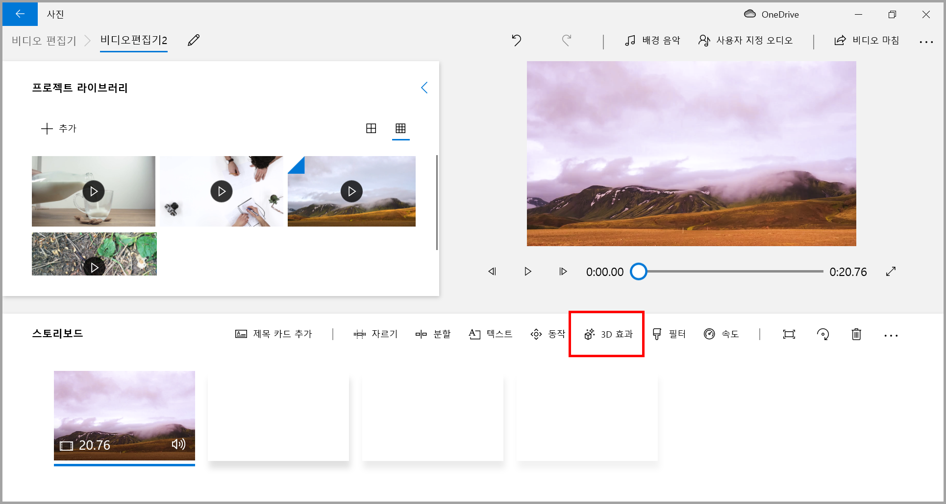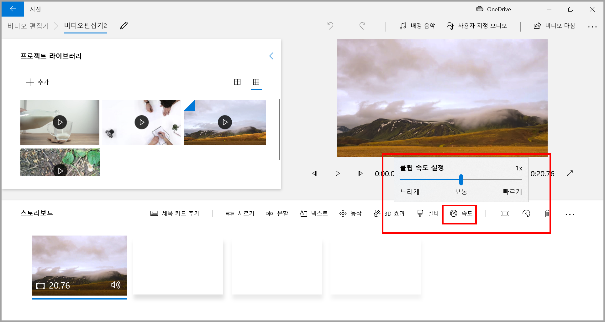 곰믹스로 간단한 동영상을 편집했듯이 비디오편집기로도 얼마든지 동영상을 편집할 수 있다. 어떤 사람에게는 윈도우10에 포함된 비디오편집기가 훨씬 간편할 수 있다. 곰믹스처럼 비디오편집기도 다루는 것이 간단했다.