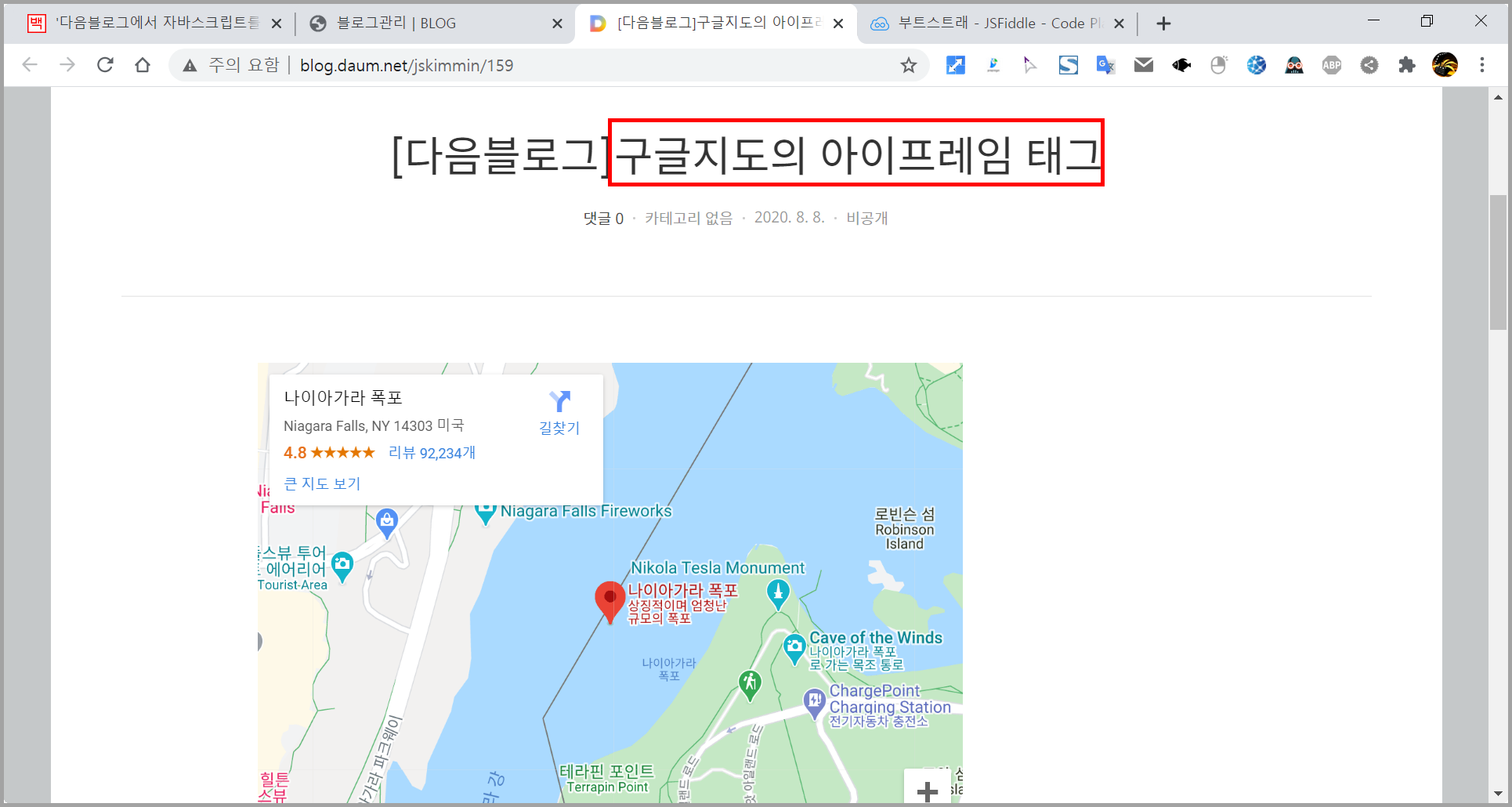 이 글에서 다음 블로그에서 자바스트립트(javascript)와 아이프레임(iframe) 삽입이 가능에 대해 적으려고 한다.