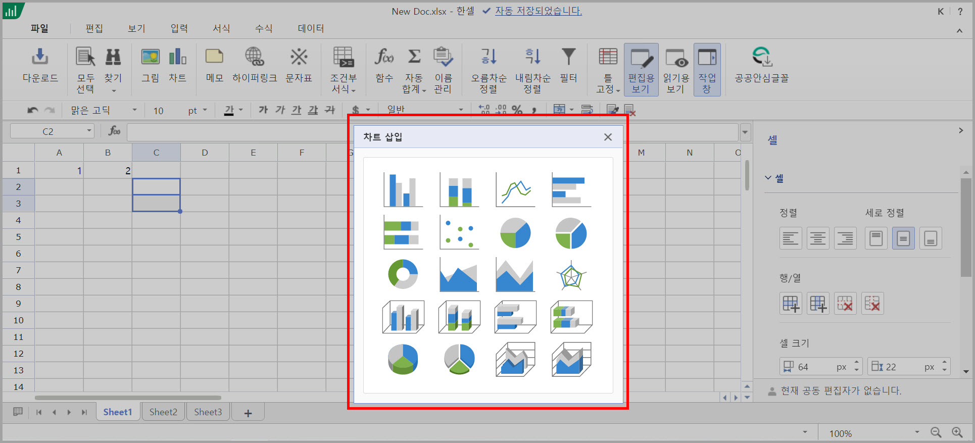 엑셀온라인을 설명할 때 엑셀 앱에서 많은 차트를 지원한다는 것을 알았다.