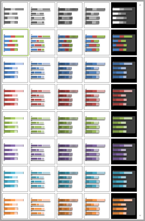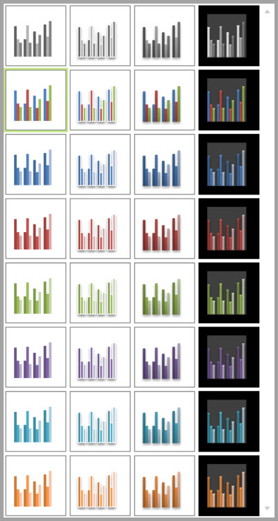 아래는 차트 52개에서 단지 3개의 차트 스타일이고 스타일을 사용하면 차트를 다양하게 만들 수 있다.