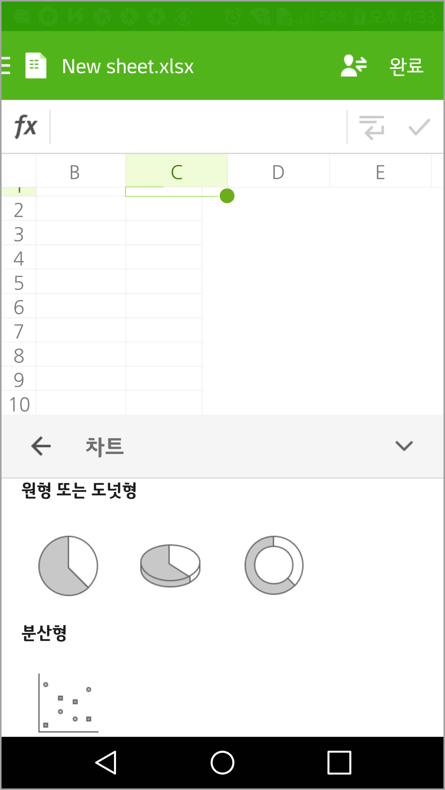 모바일 폴라리스 오피스 앱에서도 PC 클라우드 제품과 같다. 위 차트에 아래와 같은 스타일을 더하면 다양한 모양을 가진 차트를 만들 수 있다.
