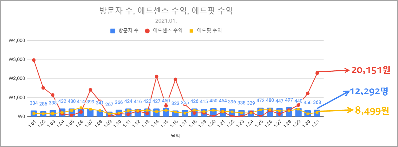 2021년 1월 방문자 수와 수익