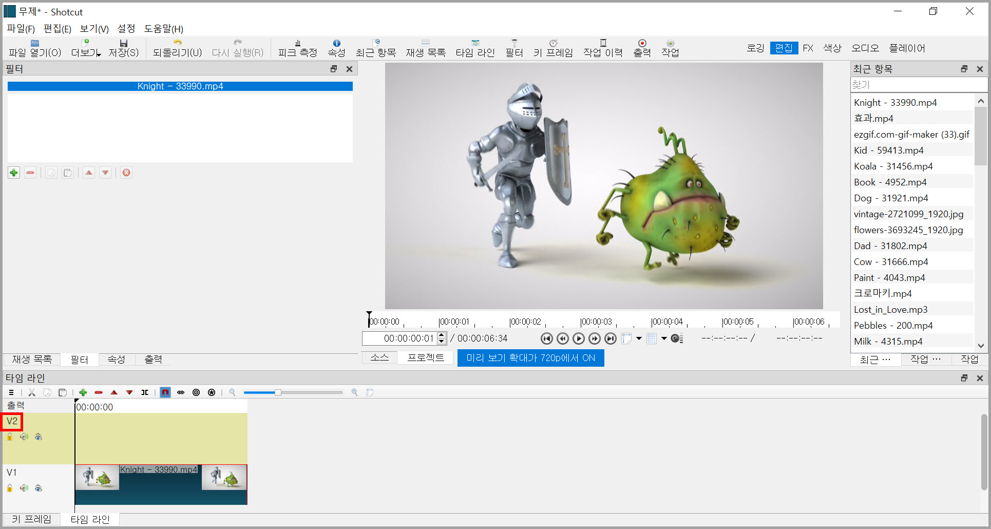 1. 작업할 동영상을 타임라인에 삽입한다.