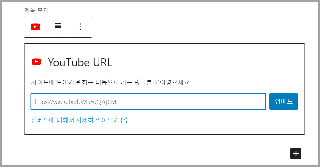 워드프레스에서는 방법이 달랐다. 위와 같은 방식으로 에디터에서 동영상 플랫폼의 동영상을 삽입할 수 없다. 가장 쉬운 방법으로 임베드를 이용하여 간단히 동영상을 삽입할 수 있다. 워드프레스 에디터에서 임베드를 지원하는 동영상 플랫폼의 임베드는 여러 가지가 있지만 유튜브(YouTube)와 비메오(Vimeo) 등이 있고 카카오TV와 네이버 TV는 없으니 다른 방법으로 삽입해야 한다.