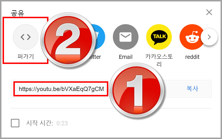 티스토리에서 동영상 삽입을 할 경우 유튜브로 아래 그림으로 설명하면 다음과 같다. 1번 공유 URL을 복사한 후 에디터에 붙인다. 그리고 복사한 공유 URL을 에디터에 붙이고 엔터를 치면 유튜브가 삽입된다. 마지막으로 공유 URL을 삭제하면 된다.