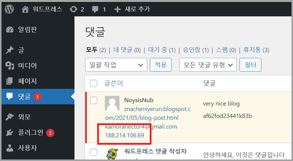 과거 티스토리에 방문자가 댓글을 적으면 관리에서 댓글을 적은 사람의 아이피 4자리를 모두 볼 수 있었다. 하지만 지금은 3자리만 볼 수 있다. 관리의 댓글 관리에서 보면 한 자리는 별표로 나와 볼 수 없다. 참고로 네이버 블로그도 마찬가지다. 그런데 얼마 전 알았는데 워드프레스는 아래 그림처럼 4자리 모두 나온다는 것을 알았다.
