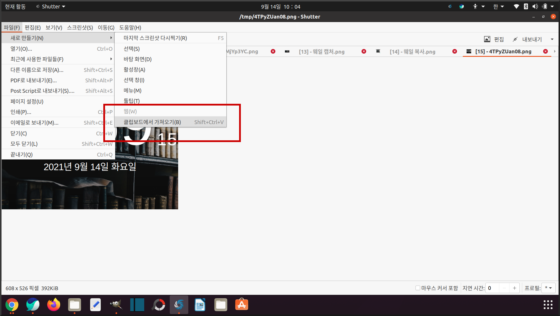 셔터를 Ubuntu Software(우분투 소프트웨어)를 통해서 설치하지 않아서 그런 것인지 설치함을 보면 없다. 그리고 왜 셔터가 Ubuntu Software에 나타나지 않았는지도 모르겠다. 그런데 모든 프로그램에서 이렇게 해보지 잘 되지 않았다. 무슨 이유가 있는지 클립보드에서 가져오면 투명이 나오는 경우가 많았다. 예로 우분투에서 김프를 많이 사용하니 김프에서 했는데 한 번은 잘 됐는데 다음부터는 투명으로 나왔다. 지금은 잘 된다.