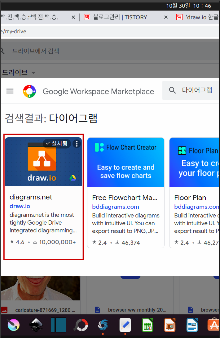 - 검색어를 다이어그램이라고 한다. 검색 결과가 나오면 draw.io(diagrams.net) 클릭 > 설치 버튼 클릭