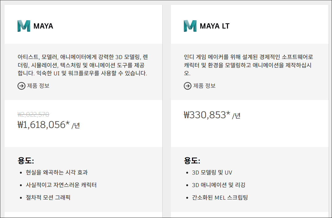 오늘 마야 페이지를 방문했더니 아래와 같이 할인 정보가 있어서 이 글에 삽입한다. 처음 이 글을 적었을 때는 할인하고 있지 않았다. 3D 모델링 및 애니메이션 관련 프로그램 가격에 대한 글을 적으면서 느끼지만 가격이 부담된다. 가격의 부담은 어둠의 경로에서 유혹한다. 그 유혹에 빠지면 해킹, 랜섬웨어 등의 위험에 빠지게 된다.