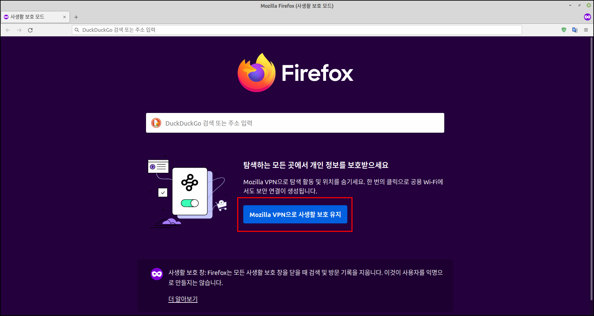 파이어폭스에서 사생활보호창(시크릿창)을 실행하니 아래 그림에 Mozila VPN으로 사생활 보호 유지라는 버튼이 있어서 혹시 무료가 아닐까라는 기대가 있었다. 무료 VPN보다 파이어폭스에서 제공하는 VPN이라면 신뢰가 갔다. 무료 VPN인 경우는 개인 정보의 위험성 등이 있고 무엇보다 속도가 느리다는 단점이 있다. 나는 무료라도 속도가 너무 느려 별로 무료 VPN을 선호하지 않는다. 속도가 느려 짜증 난다.