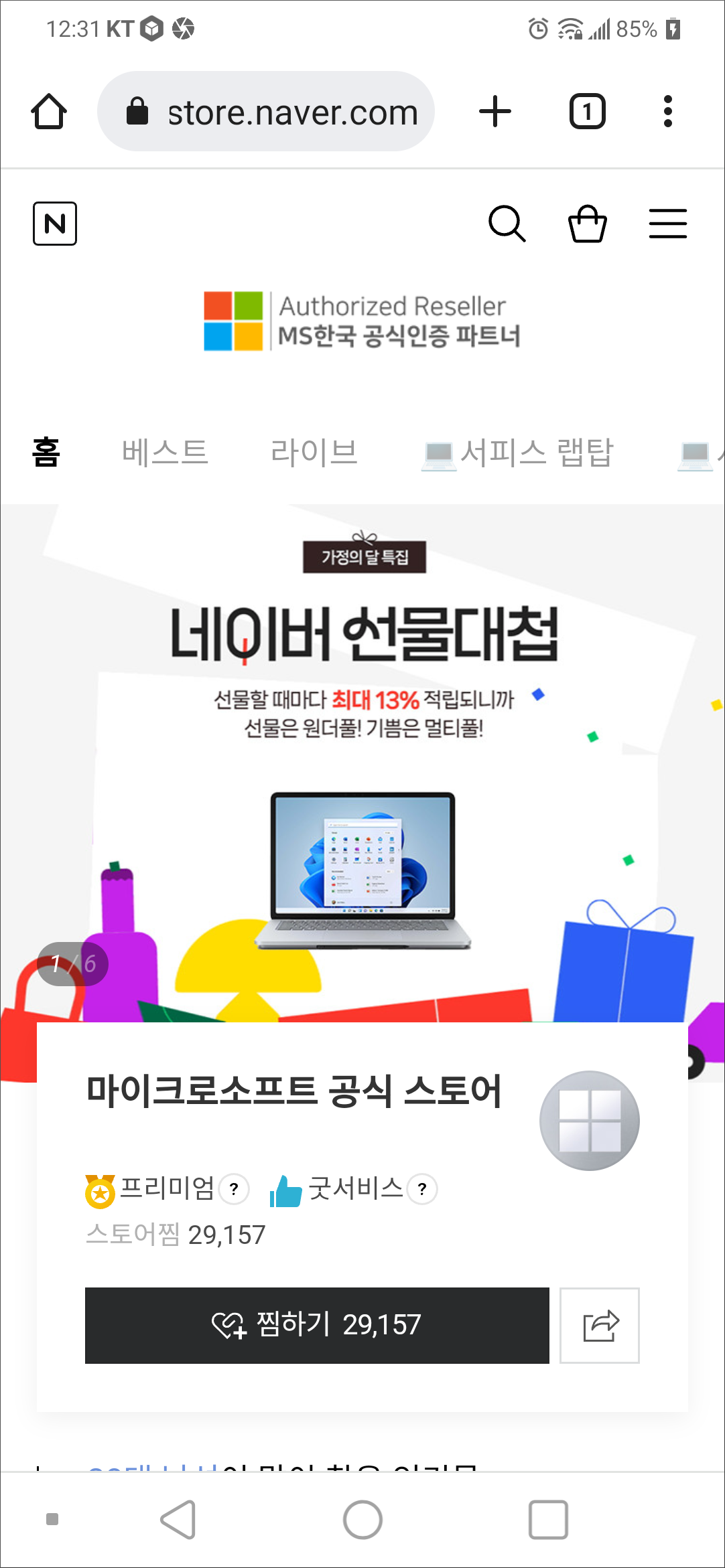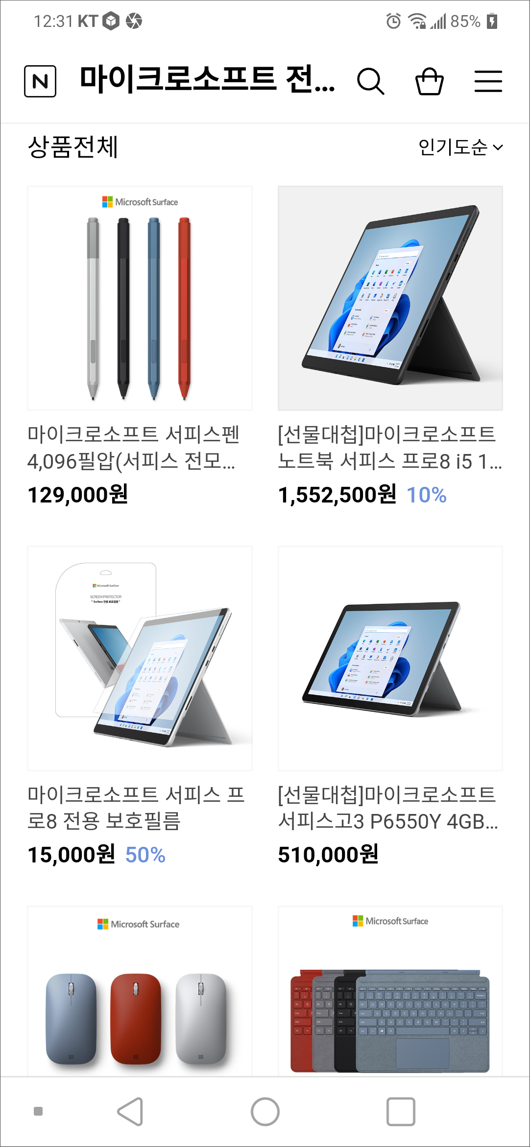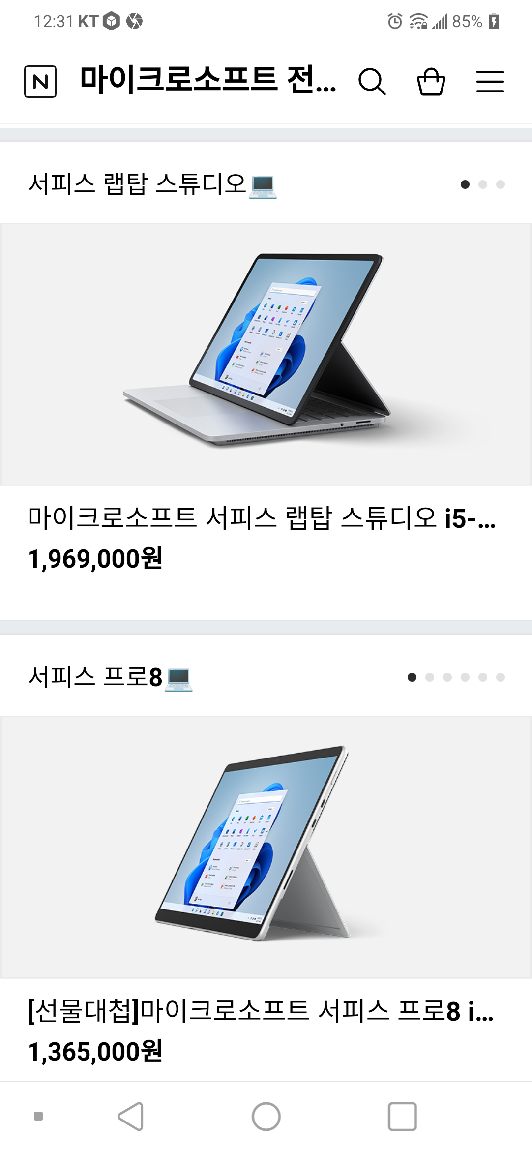 서피스 랩탑 스튜디오(Surface Laptop Studio) 제품은 아래 페이지에서 구입할 수 있다. 투인원 PC인 서피스 프로 8(Surface Pro 8) 등 다른 서피스 제품과 펜 등 액세서리도 구입할 수 있다. 아래 페이지에 네이버 쇼핑, 하이마트, 쿠팡, T월드 네 곳이 있는데 어디에서 쇼핑하든 자유이다. 내가 보기에 네이버 쇼핑이 좋은 것 같다. 왜냐하면 분류가 잘 됐고 무엇보다 스마트폰으로 접속하면 스마트폰 화면에 최적화됐기 때문이다.