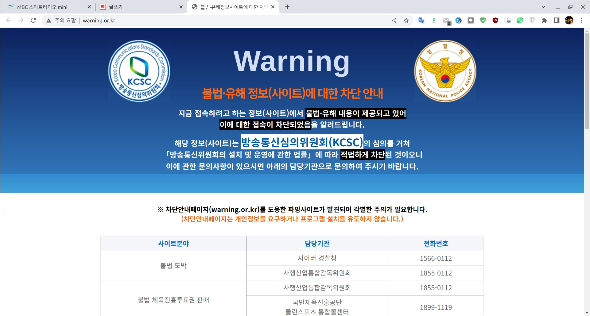 VPN 프로그램을 이용하면 안보 위해행위, 도박, 음란 등 정부에서 접속을 금지한 사이트를 접속할 수 있다. 예로 북한과 관련 있는 우리민족끼리, 음란사이트인 폰허브에 접속하면 아래와 같은 메시지를 보게 된다. VPN 프로그램을 이용하면 아래 그림에 나온 메시지는 나오지 않는다. 참고로 사용한 브라우저는 크롬이다.